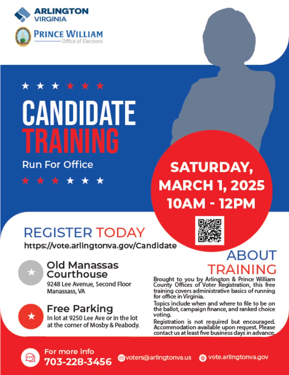 Theo nguồn tin trên trang mạng của Quận Arlington trong tiểu bang Virginia GHI DANH/Registration https://vote.arlingtonva.gov/Candidate WHAT: Northern Virginia Candidate Training WHEN: Saturday, March 1st from 10am to Noon. WHERE: Old Manassas Courthouse, Second Floor, 9248 Lee Ave, Manassas, VA About Training Brought to you by the Arlington and Prince William County Offices of Voter Registration, this free training covers administrative basics of running for office in Virginia. Topics include when and where to file to be on the ballot, campaign finance, and ranked choice voting tabulation. Complete the form below to register for the training. Registration is not required but encouraged. Free Parking is available in the lot by the Prince William Elections Office located at 9250 Lee Ave. or at the lot at the corner of Mosby & Peabody. Tentative Agenda 10am – 10:15 Introductions 10:15 – 10:45 Ballot Access Basics – Where and when to file to get on the ballot 10:45 – 11:30 Campaign Finance Overview 11:30 – Noon Understanding Ranked Choice Voting Tabulation in Virginia Đào tạo ứng viên Bắc Virginia Về đào tạo Được Văn phòng Ghi dDnh (Đăng ký) cử tri của Quận Arlington và Prince William mang đến cho quý vị khóa đào tạo miễn phí này bao gồm các kiến thức cơ bản về hành chính khi ứng cử vào chức vụ tại Virginia. Các chủ đề bao gồm thời điểm và địa điểm nộp đơn để có tên trên lá phiếu, tài chính chiến dịch và bảng xếp hạng bỏ phiếu. Hãy điền vào mẫu dưới đây để đăng ký tham gia khóa đào tạo. Không bắt buộc phải ghi danh (đăng ký) nhưng được khuyến khích. Thời gian & Ngày tháng: Thứ Bảy, ngày 1 tháng 3 từ 10 giờ sáng đến trưa. Địa điểm : Tòa án Old Manassas, Tầng 2, 9248 Lee Ave, Manassas, VA Có chỗ đậu xe miễn phí tại bãi đậu xe gần Văn phòng Bầu cử Prince William, địa chỉ tại 9250 Lee Ave. hoặc tại bãi đậu xe ở góc Mosby & Peabody. Chương trình nghị sự dự kiến 10 giờ sáng – 10 giờ 15 phút Giới thiệu 10:15 – 10:45 Kiến thức cơ bản về quyền bỏ phiếu – Nộp hồ sơ ở đâu và khi nào để được ghi tên vào lá phiếu 10:45 – 11:30 Tổng quan về Tài chính Chiến dịch 11:30 – Trưa Tìm hiểu về Bảng xếp hạng bỏ phiếu lựa chọn ở Virginia Post navigation Lễ khai trương Nhà hàng Taste Community Restaurant ở thành phố Arlington trong tiểu bang Texas mở cửa vào ngày 5 tháng 3 năm 2025 Hội chợ tài nguyên cho công nhân và nhà thầu liên bang do Nghị sĩ Don Beyer, Thành phố Alexandria, Thành phố Falls Church, Quận Arlington và Quận Fairfax tổ chức